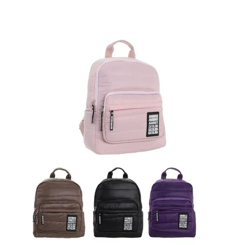 MOCHILA DE NYLON CON UNA DIVISION PRINCIPAL Y 2 BOLSILLOS FRONTALES CON CIERRE.