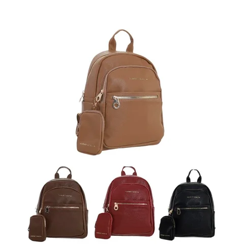 MOCHILA DE ECO CUERO CON 2 DIVISIONES PRINCIPALES , UN BOLSILLO EN EL FRENTE, UN BOLSILLO TRASERO.